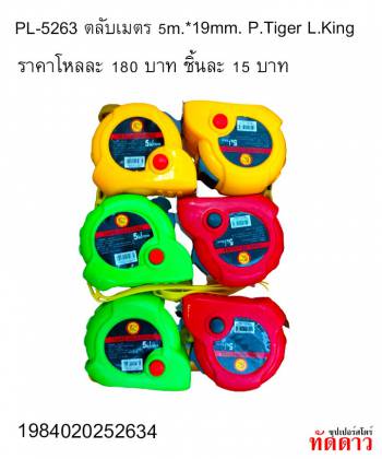 PL-5263 ตลับเมตร 5m.*19mm. P.Tiger L.King คละสี ( 240)