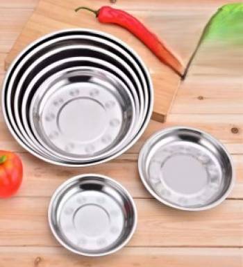 จานสแตนเลสกลมตื้น ขนาด 22 cm. ( 600)