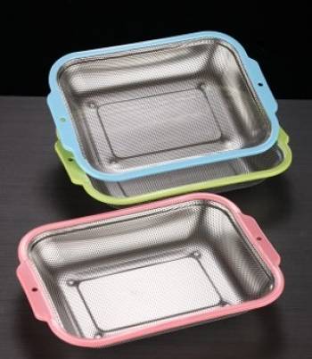 กะละมังสแตนเลสแบบรู มีหูจับ