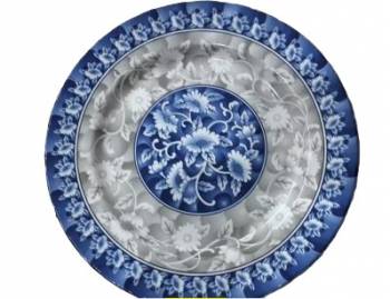 จานแบนลายดอกไม้สีน้ำเงิน ขน