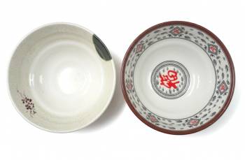 ชามก๋วยเตี๋ยวด้านนอกลายสีเ